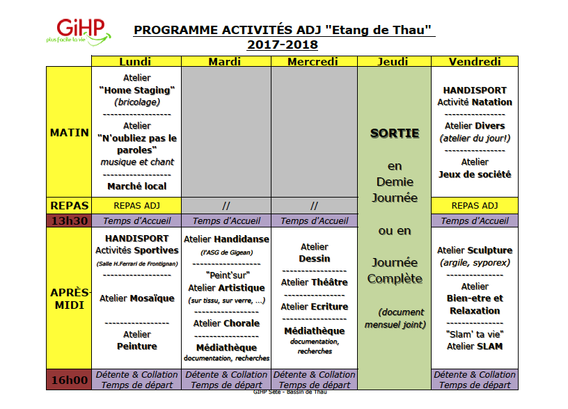 Mise à jour du planning de l’Accueil de Jour