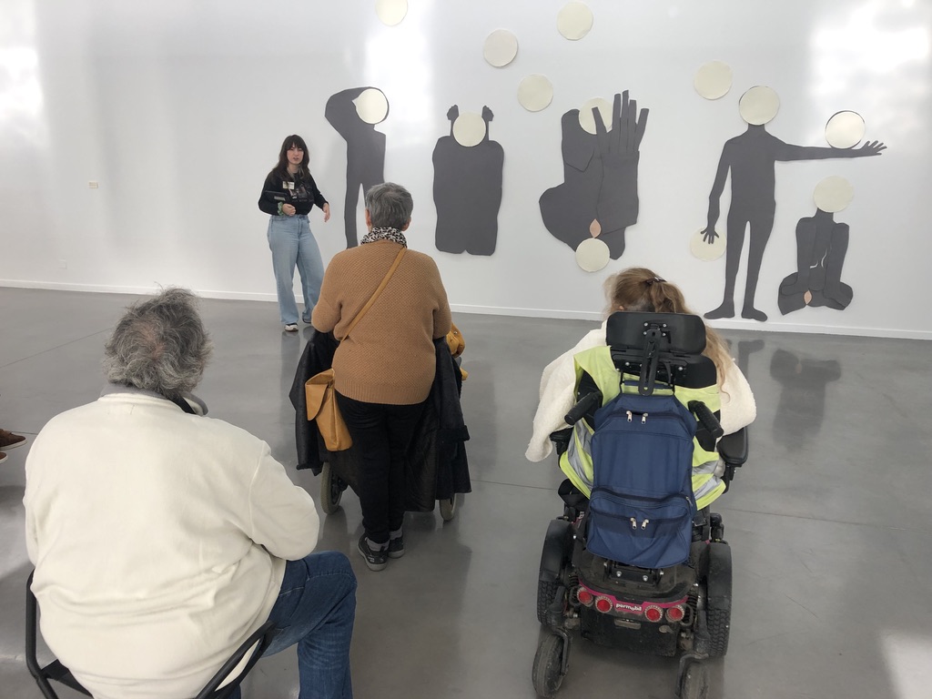 Tout le groupe est ensuite parti à la découverte du Musée avec en premier lieu la présentation des oeuvres « Rotation et la Cabane de Buren » puis la découverte de 3 expositions temporaires : « Le cercle est le monde » d’Anne-Marie Schneider, « Il va y avoir du sport » d’Aurélie Piau et « Exoskeletlight » de Naomi Maury.