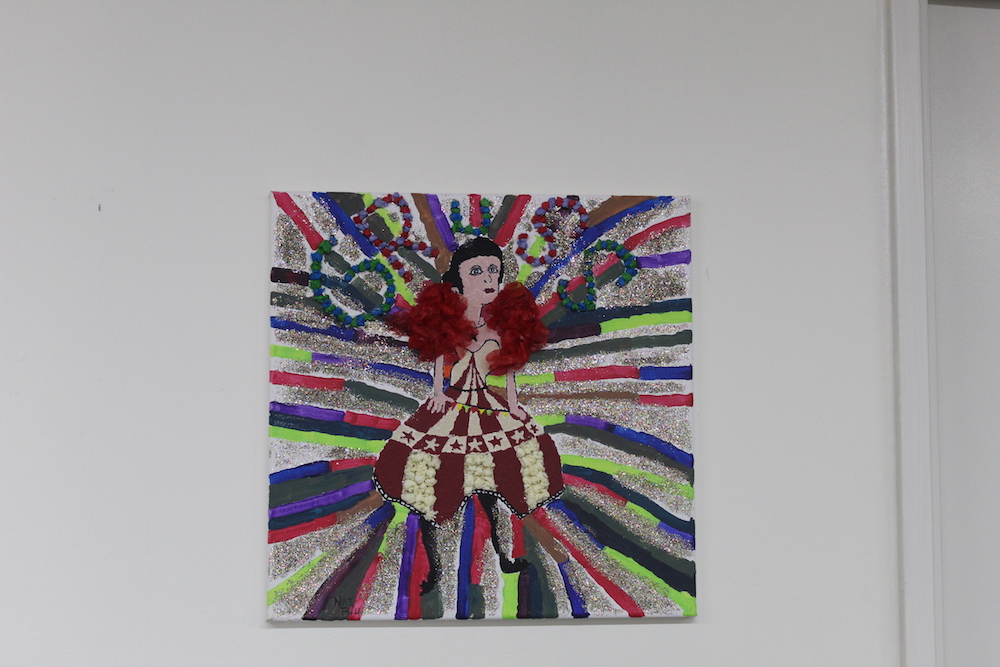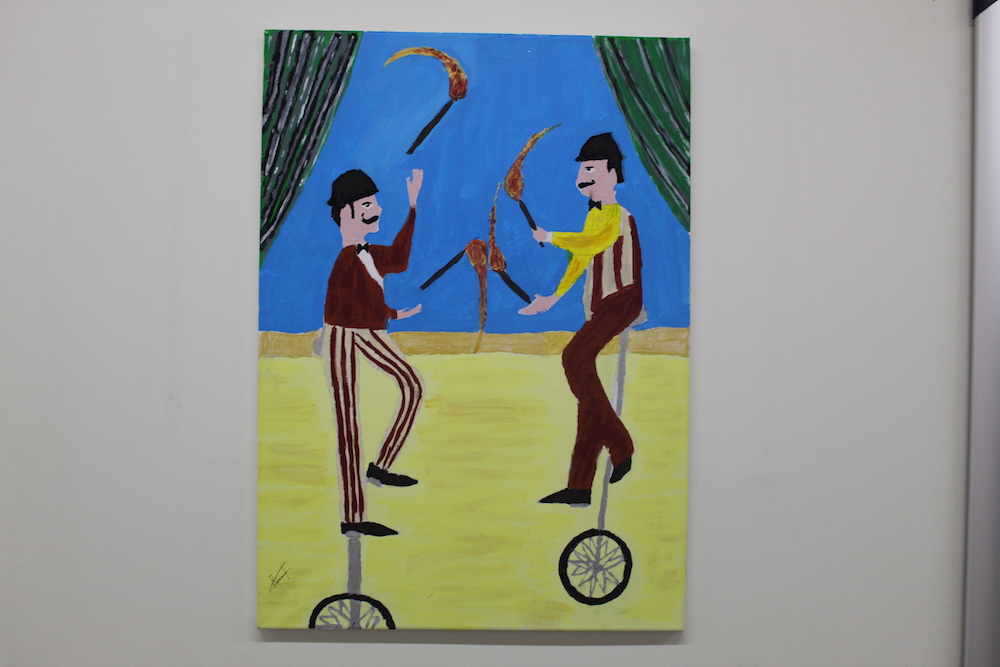 Ces œuvres sont le résultat d’un travail de plusieurs mois et associent peinture et textes de slam. Pendant le vernissage, lecture a été donnée par des bénéficiaires de textes illustrant les tableaux présentés.