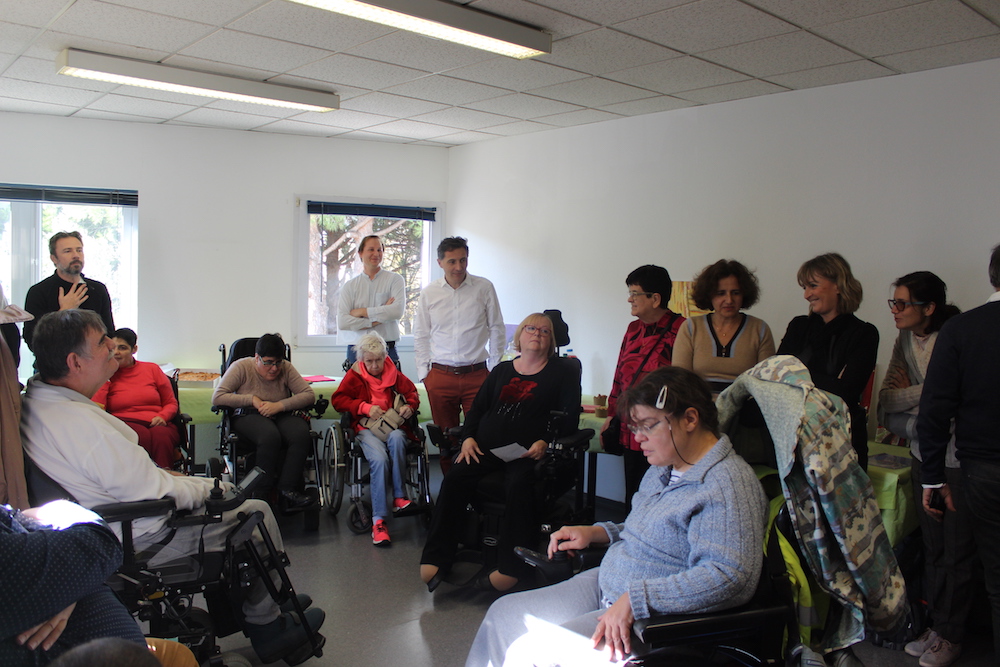 Jeudi 28 novembre 2019, le GIHP de Montpellier a accueilli les bénéficiaires de l’Accueil de Jour de l’étang de Thau à l’occasion d’un vernissage.