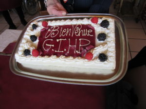 A leur arrivée, les participants ont tout d’abord déjeuné au restaurant Le Clos Cerdan qui les a chaleureusement accueillis, leur réservant une surprise pour le dessert!